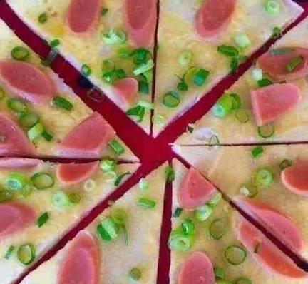 备料:面粉、鸡蛋、白糖、火腿肠片、葱花