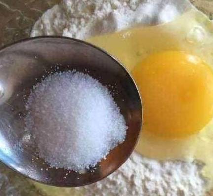 第一步、面粉放到碗里,加入一个鸡蛋、白糖、水然后搅拌成面糊,搅拌至没有面疙瘩就可以