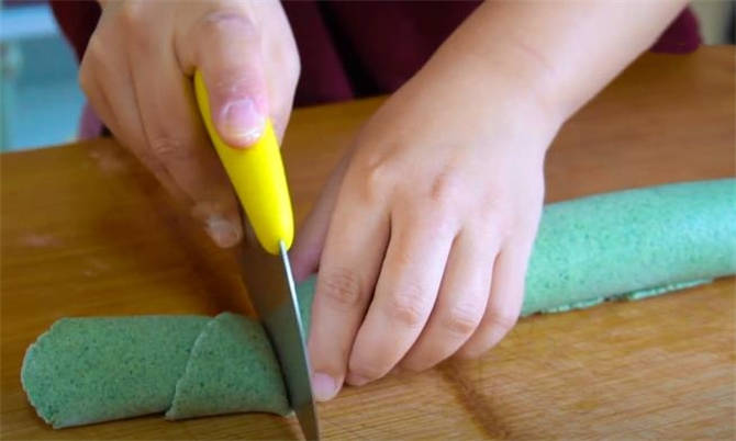 5.用切刀先把前面的这部分给去掉,然后切成自己喜欢大小的面剂。