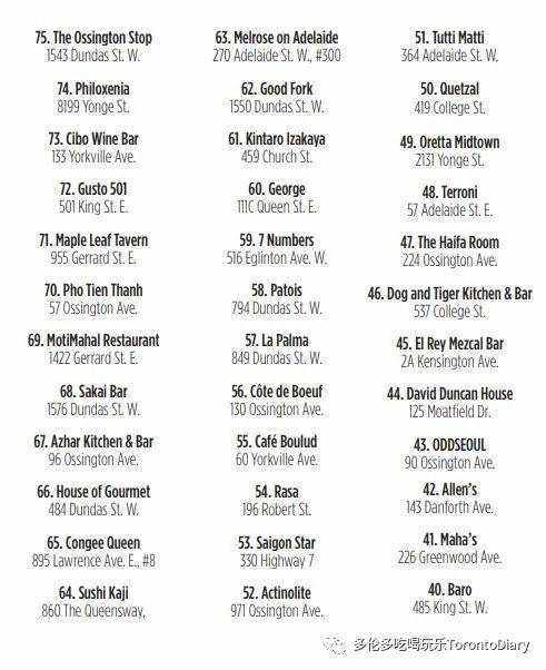 Streets of Toronto最近邀请了50多位多伦多最好的厨师,请他们分享自己在食物、服务和环境方面最喜欢的餐馆。