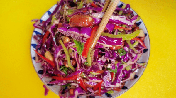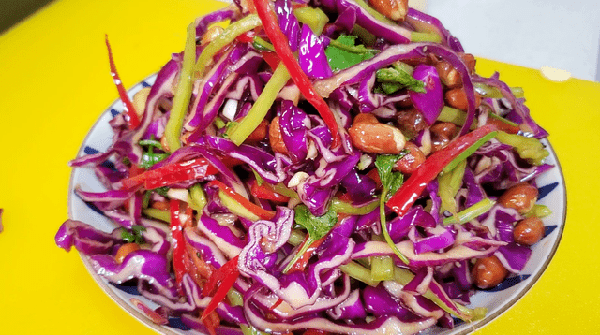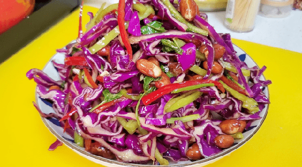 一道美味的凉拌紫甘蓝就做好啦!是不是看着就有食欲呀?隔着屏幕都能闻到香味,紫甘蓝清脆又入味,花生米又香又脆,真的是吃一口就停不下来了!越吃越上瘾,上桌大人孩子都爱吃!随手一拌,真的是比肉还香!