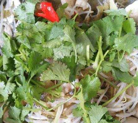 7.花椒,干辣椒,青红椒,香葱,香菜适量。洗净切好。