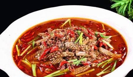 再将汤浇在腰花上面,最后放少许、姜末、花椒、葱段和辣椒节于腰花上,泼上一勺滚油即可。
