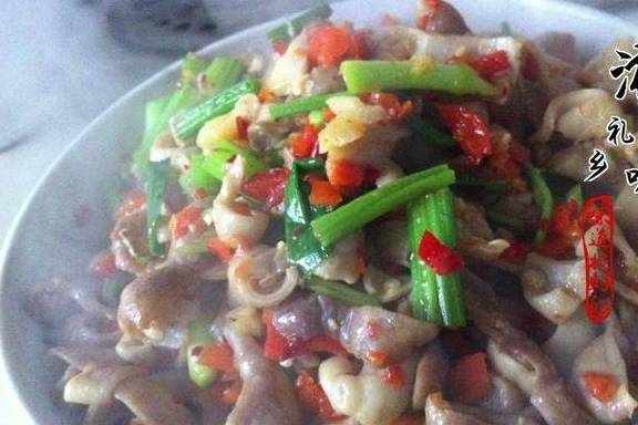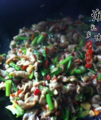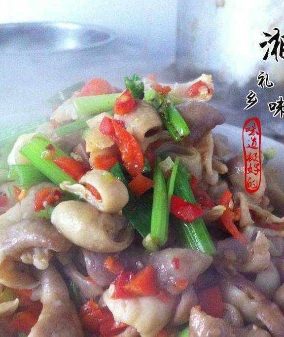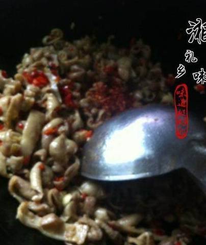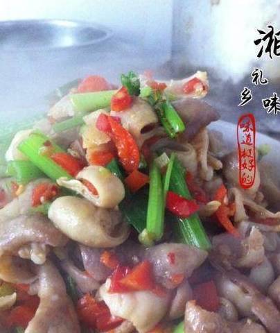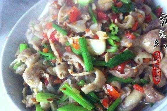 把切好的大肠下锅