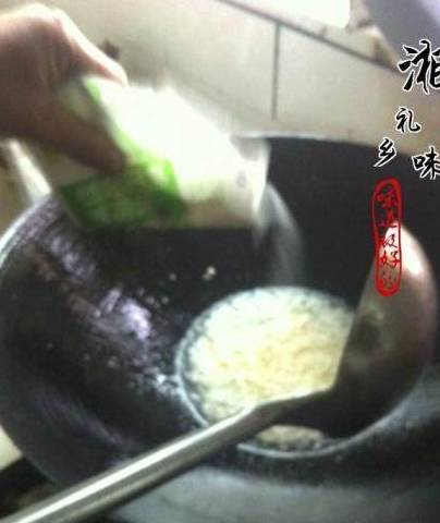 锅里放油,下大蒜和姜末,炒出香味,放盐