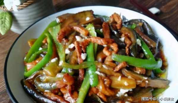 材料:茄子4个,辣椒4个,猪肉100克,油盐适量,葱1段,姜1片,蒜2瓣,生抽1汤匙,老抽1/2汤匙酱汁、淀粉适量