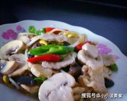 做法:1.蘑菇用冷水浸泡,去根,洗净,撕去小花,腹部切成薄片。