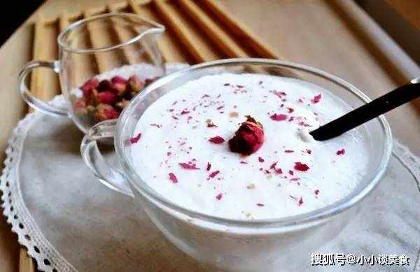 材料糯米40克、花生100克、玫瑰花5朵、牛奶250克、椰浆250克