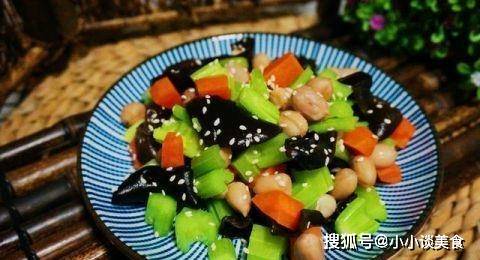 原料:芹菜1根、胡萝卜1根、黑蘑菇适量、花生2粒、八角1个、盐3克、生抽1勺、白糖1勺、陈醋2勺、香油少许、小白芝麻