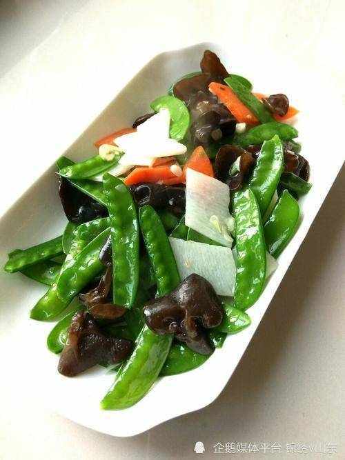 1、荷兰豆撕掉老筋洗净、木耳泡发洗净、胡萝卜去皮洗净切菱形片、山药去皮洗净切菱形片。