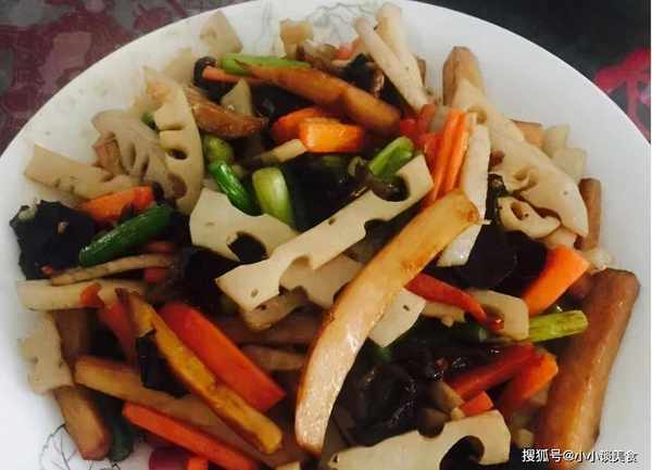配料:杏鲍菇一个;莲藕;胡萝卜;黑木耳;大蒜泥。主要成分按降序排列;姜末适量;更多蒜末(根据个人口味);酱油适量;胡椒粉适量;适量的盐;植物油适量