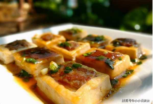 1.豆腐切成大方块,用勺子挖出小坑。