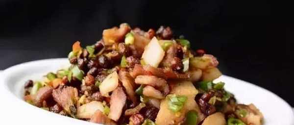 原料:五花肉500克,豆豉100克,红辣椒50克,青辣椒150克,生姜、蒜片、蒜叶、盐、味精各适量。