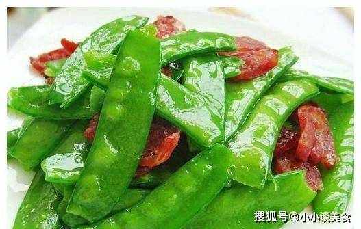 配料:香肠100克;200克荷兰豆;盐;味精