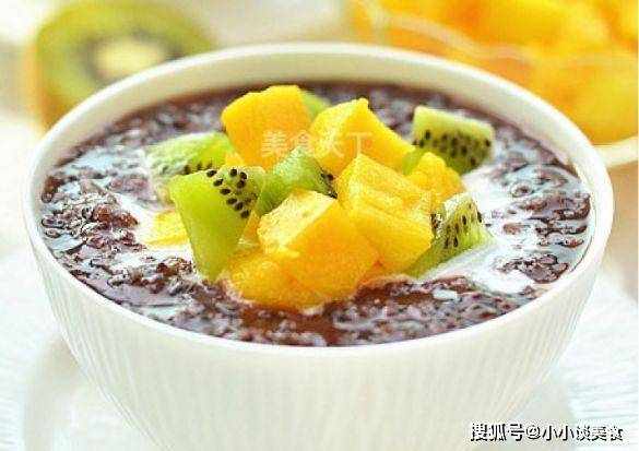 材料:黑米1份,大米1份,奇异果2个,芒果1个,椰浆适量,冰糖适量