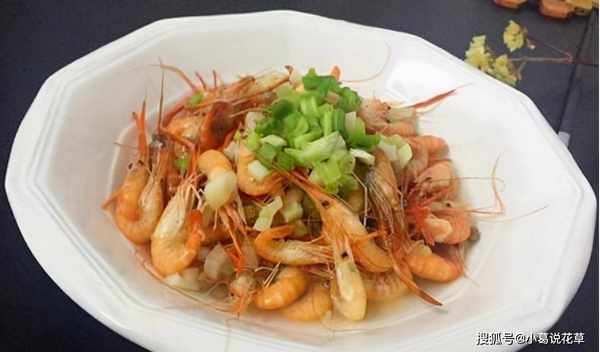 4、虾仁捞出查油后,放入碗中,加入葱花、姜末和蒜泥,淋上一勺热油。