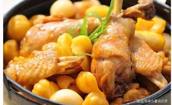 6、鸡块淋上清水,盖上锅盖小火炖10分钟,然后开盖捞出渣。7.倒入栗子再炖10分钟,撒上鸡精,尝味即可