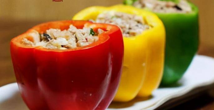 1、豆芽、香菇、玉兰片分别洗净,切成绿豆大小的颗粒。猪肉末。将甜椒去蒂,用刀从茎基部切下一块作为“盖”,挖出甜椒籽,洗净,放入开水锅中焯一下,捞出晾凉凉爽的,当它变干时,将小刀放在甜椒上。表面刮4-6次,形成花瓣状,不刮透。