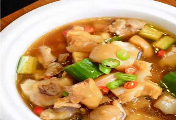 2、猪脚去骨切小块,放入盆中,倒入等量的红醋和米醋,加入盐和鸡精,浸泡约5分钟。5分钟,再加入黄瓜块和青红小米椒圈,盛盘装盘即可。
