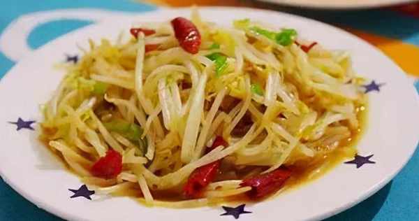 配料:绿豆芽、青椒、花椒、葱、蒜、油、盐、糖、味精、醋。