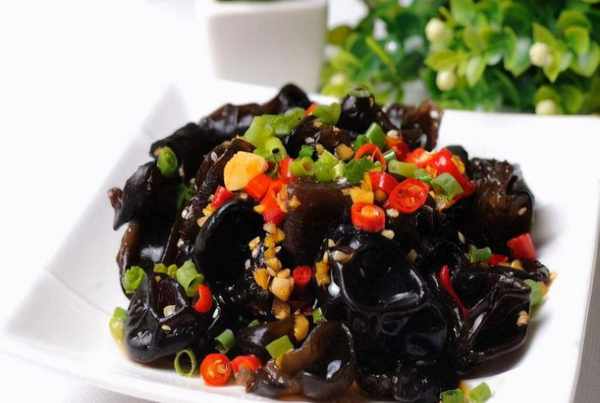 3、锅中加入少许油,将黑木耳放入锅中用中火炒熟,不断搅拌。当黑蘑菇发出噼里啪啦的声音时,加入香料一起炒,不断搅拌。