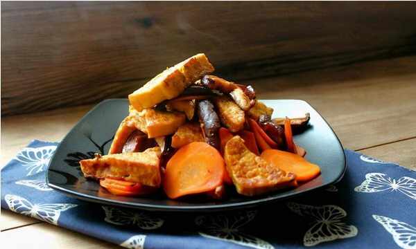 配料:北欧豆腐、香菇、胡萝卜、生抽、盐;