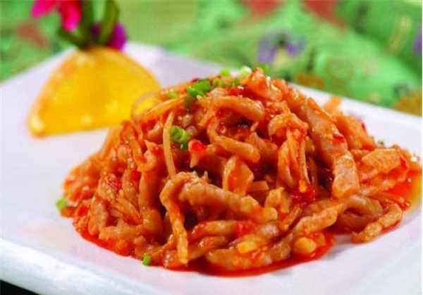 1.将牛筋肉取出,加入料酒和水淀粉拌匀后腌五分钟。