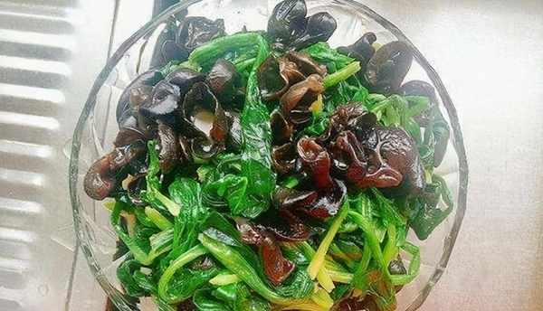 配料:菠菜适量,香菇10个左右,盐适量,白糖少许,鸡精少许,香油(香油)少许,香醋少许;