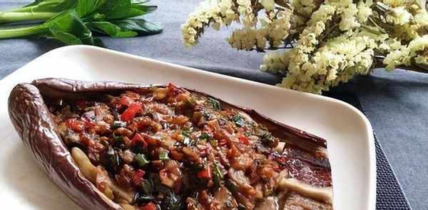 材料:茄子约300克,叉烧约100克,葱花1/2杯,红辣椒1个,青椒1个。