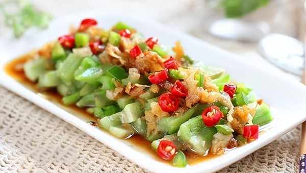 材料:丝瓜1条、海米20克、大蒜2瓣、花椒2粒、花椒少许、生抽1勺、植物油20ml、盐少许