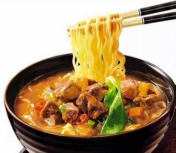 5、面条煮三遍后捞出,加少许盐,放入热面条汤中,将炸好的鸡块放在面条上,撒上香菜和蒜苗,撒上香油。