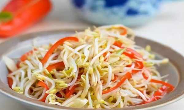 洋葱洗净,切块,豆芽去根,冲洗干净,锅里放水,烧开,放入豆芽,翻动迅速捞出待用。
