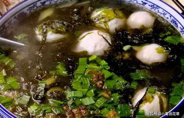 紫菜汤和汤圆的味道也很不错。有些地方吃咸汤圆,用紫菜汤做汤圆。