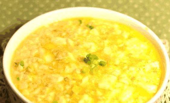 6、文火煮约5分钟后,倒入少许油勾芡玉米粒,待油浮到上面。