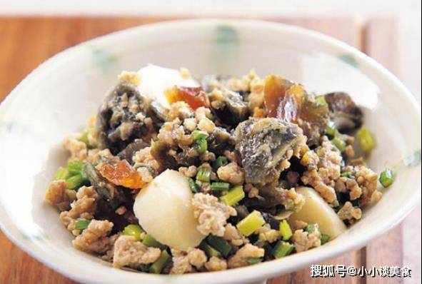 1.油锅烧热,加入肉碎炒香,再加入笋丁炒干。