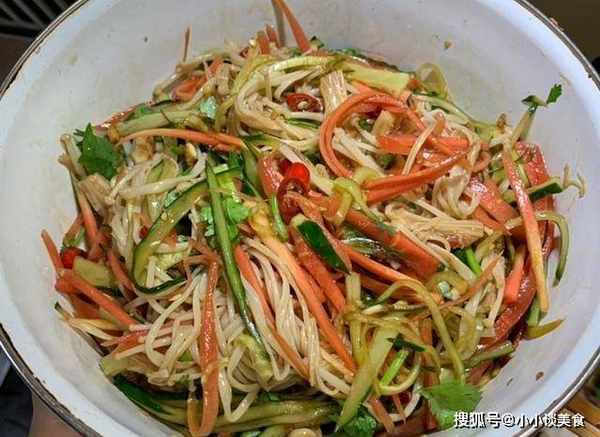 原料:纯瘦肉、皮丝、香菜、青菜、紫菜、香油、辣椒油、胡萝卜、醋、胡椒粉、酱油。