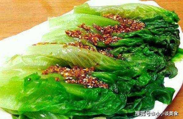 2.锅中加入1000毫升水,煮沸。将生菜放入沸水和盐中。这个过程是基于个人喜好。如果想吃脆的,出锅需要20秒,因为生菜是可以生吃的。怕生吃不干净,就用水烫了一分钟,所以稍微有点过熟。取出装盘。