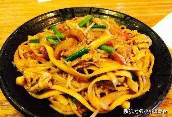 7、最后倒入切好的面条,继续翻炒均匀,倒入香油起锅。