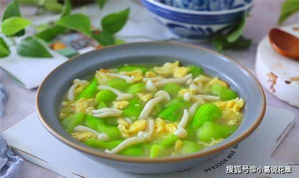 【原料】:丝瓜500克,白玉菇65克,鸡蛋2个,盐适量,油少许