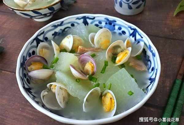 【原料】:冬瓜600克,文蛤150克,猪肉适量,盐少许,料酒少许