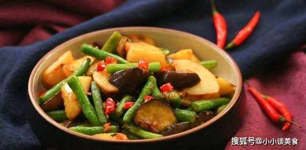 做法:1、豆角洗净切块,土豆去皮切块,茄子切块。