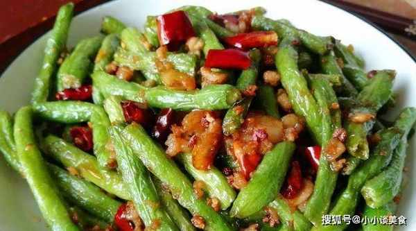 配料表:豆角、肉碎、花椒、葱、姜、蒜、红辣椒、盐、料酒、糖、酱油、芝麻