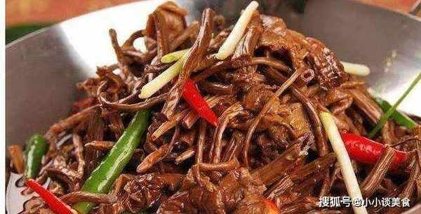 翻炒一会后加入千张干豆腐继续翻炒