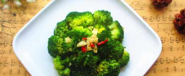 3、西兰花焯水捞出,用冷水浸泡片刻,捞出装盘。