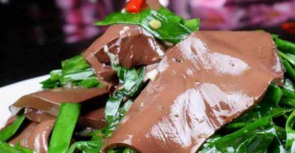 做法:1、鸭血切成厘米见方的块,用开水焯一下备用,韭菜洗净切片。