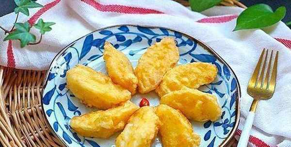4.锅里放油,烧热至70%,将鱼片均匀沾上蛋液,炸至金黄色,捞出沥油备用;
