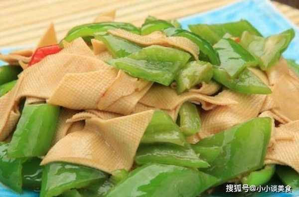 2、豆腐皮吸水性强。青椒入锅后加少许水,这样可以加快豆腐皮和青椒的熟化速度。