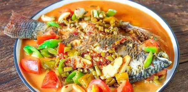 4.煮好后,加入炸好的鱼和两块桂林腐乳,用中火炖20分钟左右。(注意炖的时候鱼会粘在锅底)