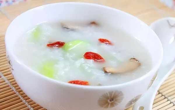 做法:鲜丝瓜1条,粳米100克,白糖少许;鲜丝瓜去皮去浆,粳米洗净待用,将粳米放入锅中,将鲜丝瓜切成2厘米长、1厘米厚的块,放入锅中,加水适量,置火上煮沸,再用文火煮成粥,加白糖即成。