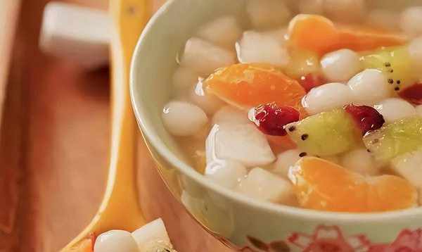 材料:汤圆、梨、冰糖橙子、猕猴桃、冰糖、枸杞